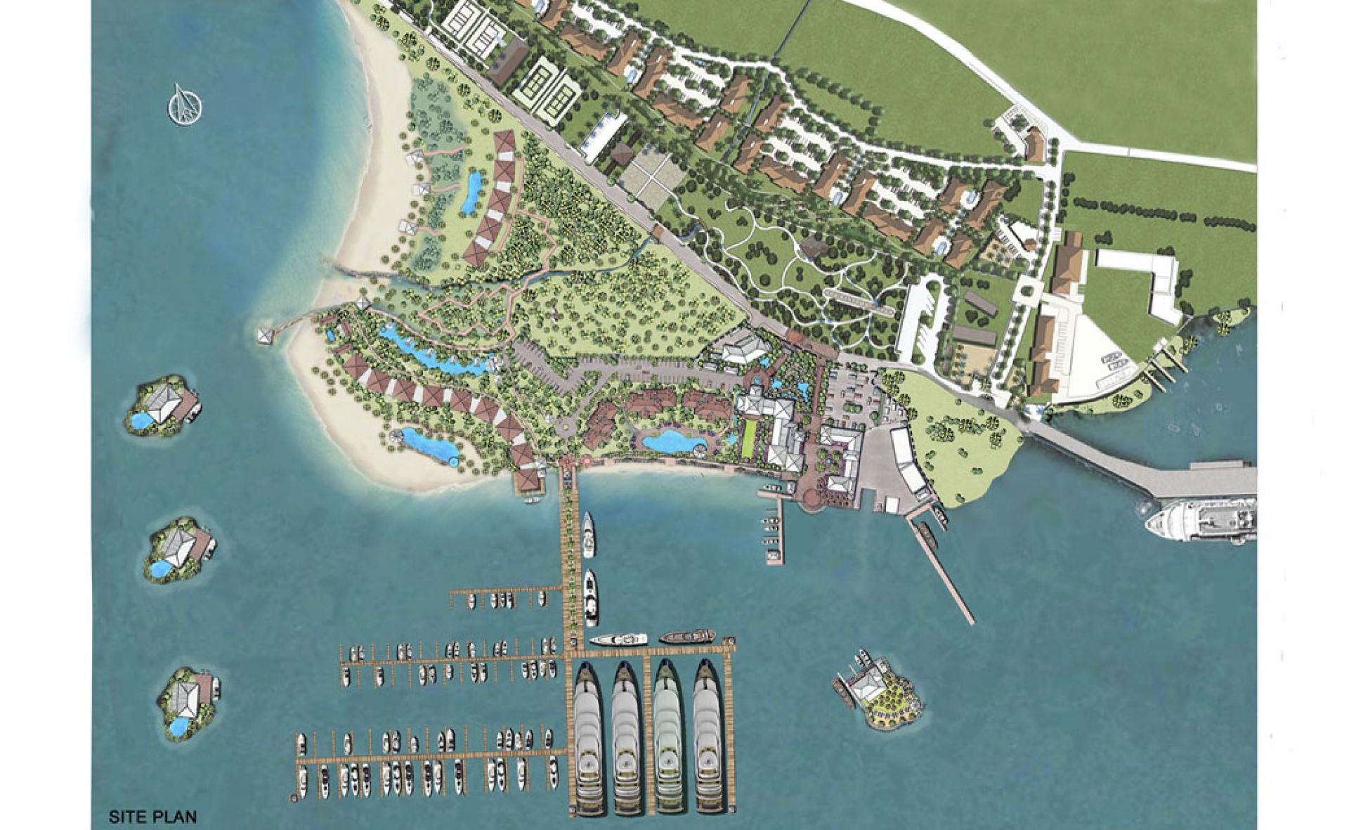| Size: | 50 marina slips, 49 Hotel keys , 6 Beach Club Vil |